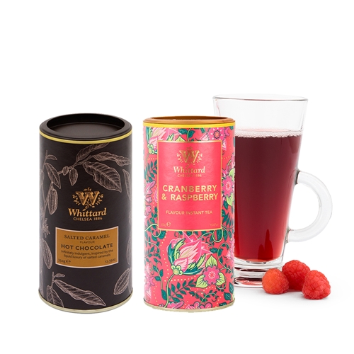 幸福,即時享受!whittard情人節限定組合,鹽味焦糖風味巧克力粉是甜與鹹的完美搭配!來自英國純淨真空減壓岩鹽,融合濃厚的焦糖風味,交織出特別的巧克力風味飲,當岩鹽遇上焦糖,甜蜜、苦澀和微鹹口感共存,豐富而細膩。搭配莓果風味即溶粉,覆盆子與蔓越莓的組合,交織而成甜蜜、酸甜的風味,濃郁清香,清爽不甜膩。